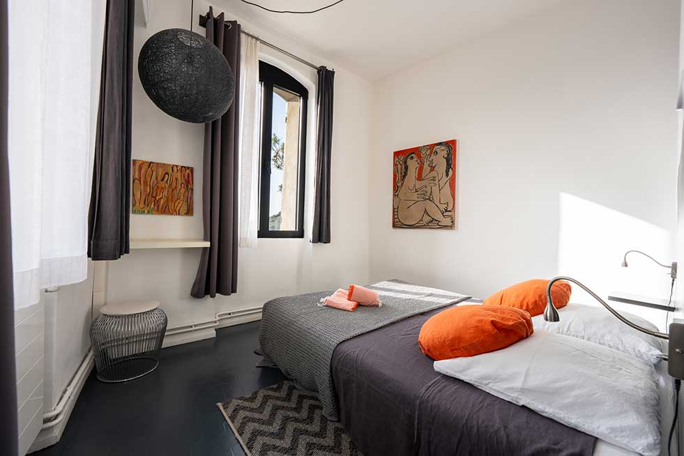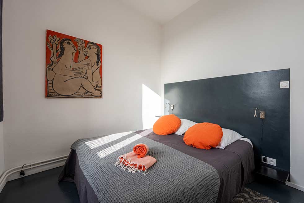 Elle vous charme par son côté authentique. Vieilles tomettes restaurées, voilages de lin clairs et grande salle de bain séparée équipée de la plus grande baignoire balnéo de la maison.